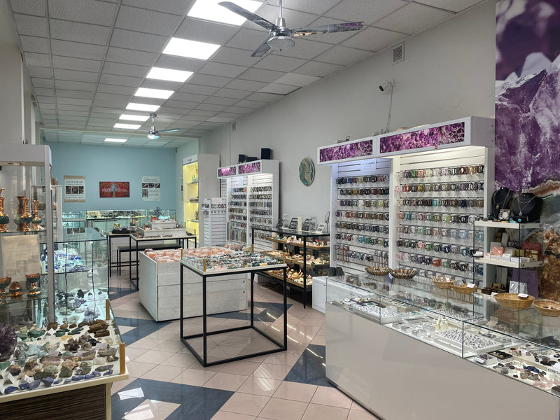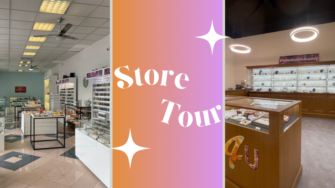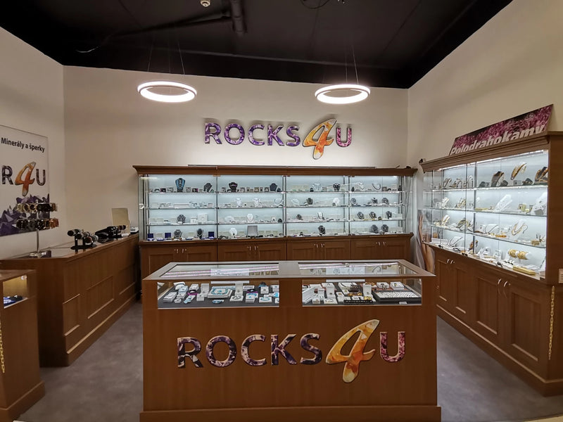 Obchod s krystaly a minerály s kolekcí šperků